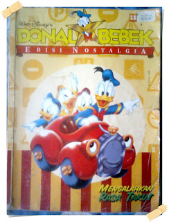 Nah 2 buku di atas juga merupakan salah satu buku favorit gw. Masih tetep Donald Bebek. Dan masih tetep pemberian dari teh tiwi. :). Kalo yang atas, edisi nostalgia-nya komik donal bebek. Isinya merupakan kumpulan dari komik-komik donal bebek jaman baheula (jaman dulu-red). Kalo yang bawah buku pocket gitu (atau buku saku, karna emang ukurannya yang bisa dimasukkin ke saku). Di buku saku ini ga hanya ada cerita-cerita aja, tapi juga ada kuis-kuis yang bisa mengasah kemampuan dan keterampilan otak. (wuidii, cuanggih kan).
