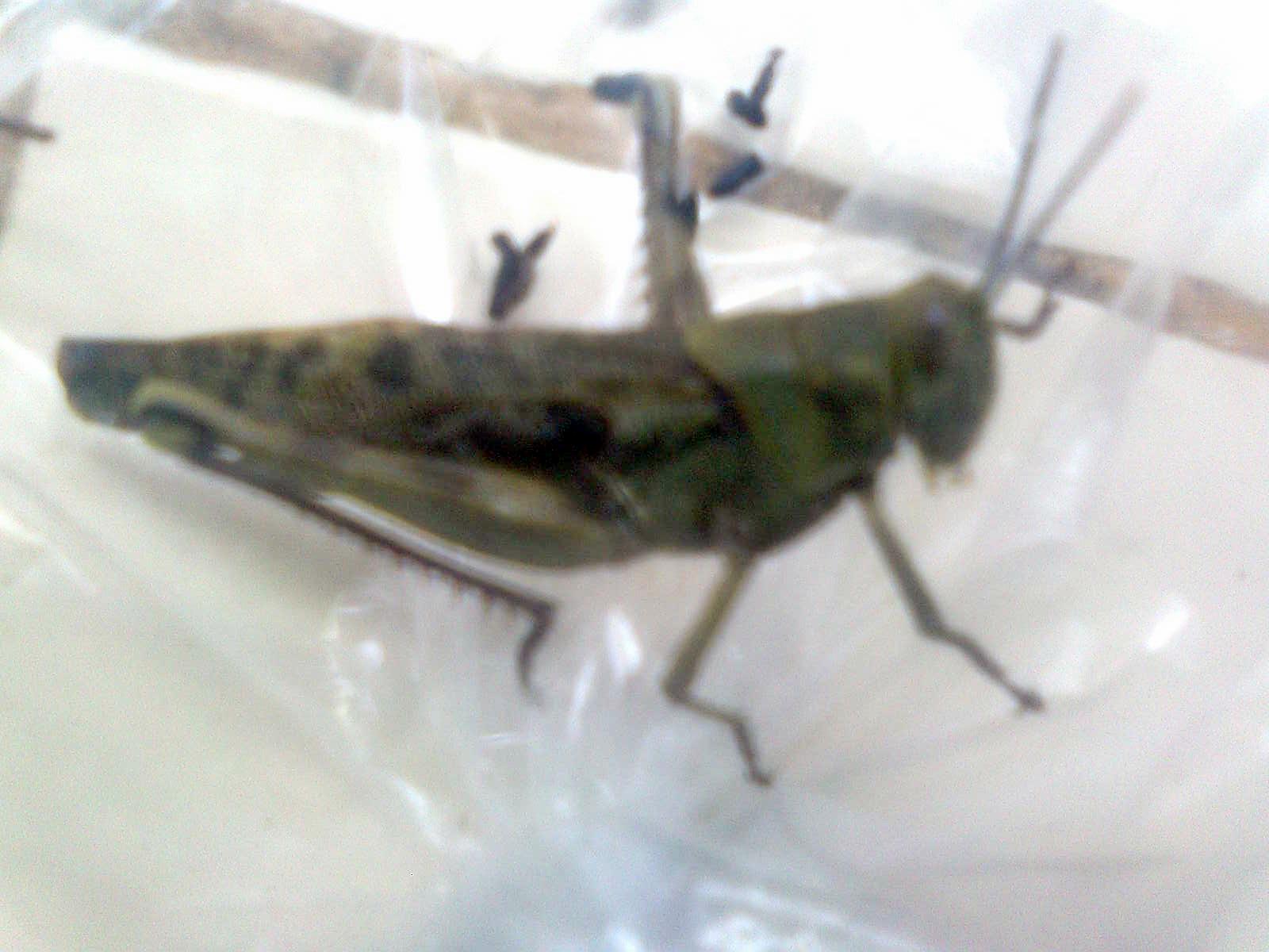 Belalang ini gw masukin ke plastik soalnya dia ga mau diem, loncat-loncat mulu. Udah gitu di kakinya ada duri yang tajem-tajem banget.